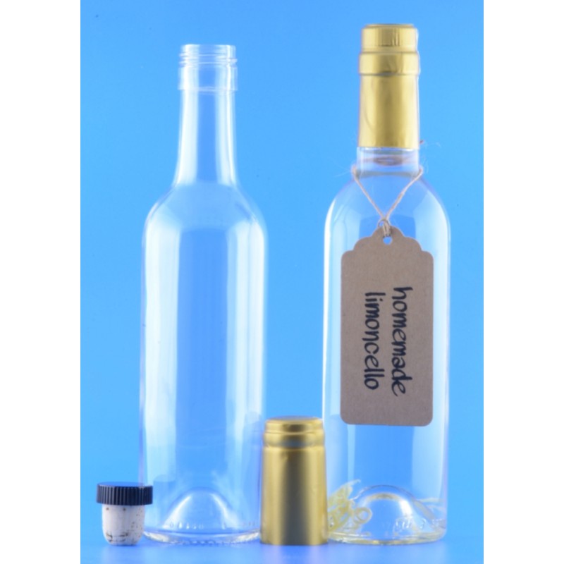 6 only 375ml glass wine style bottles from Italy complete with cork, gold capsule and a blank hang tag. (The gold capsule is heated with a blow drier to shrink it on to the bottle.) These are very limited stock. I have not had them for over 12 months and I may never have them again.