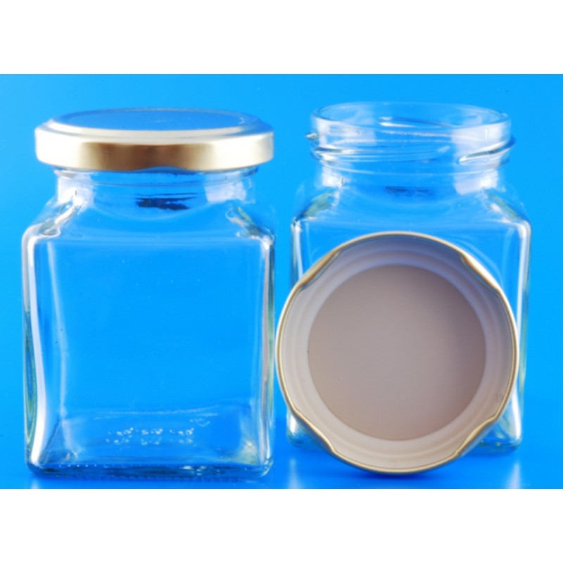 24 only 190ml Square glass jars for jams and chutneys with either a silver or gold 58mm twist top lid. This is a standard box size.